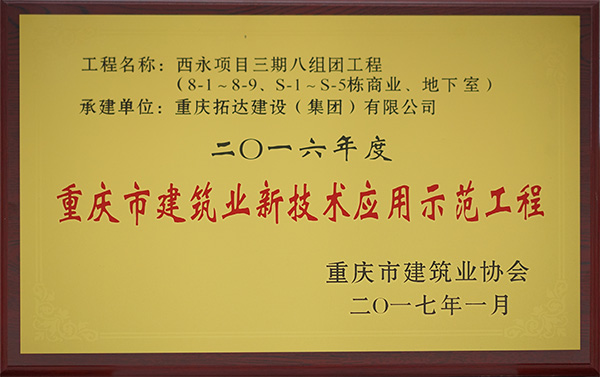 • 2016年度重慶市建筑業新技術應用示范工